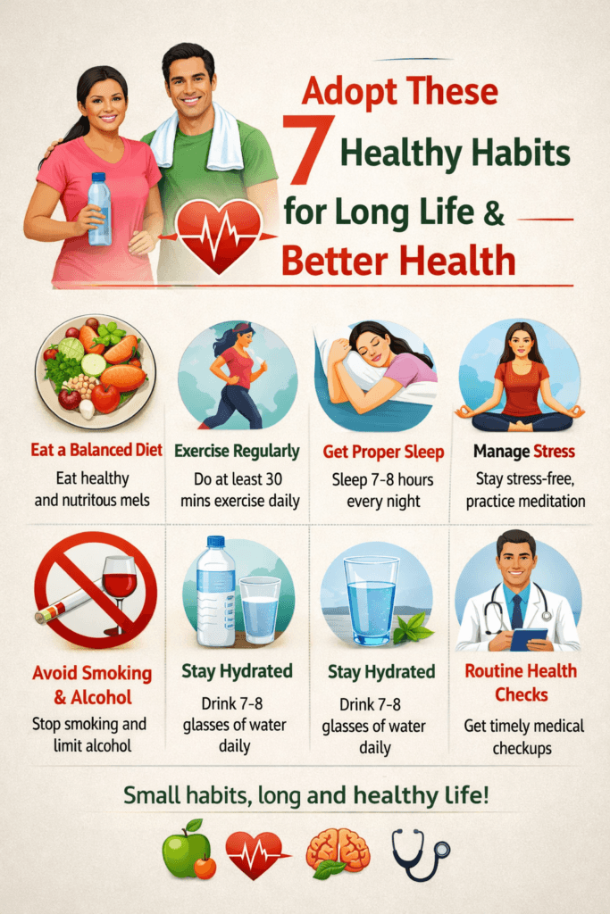 आज से ही इन 7 हेल्दी आदतों को अपनी दिनचर्या में शामिल करें और स्वस्थ जीवन की ओर पहला कदम बढ़ाएं।